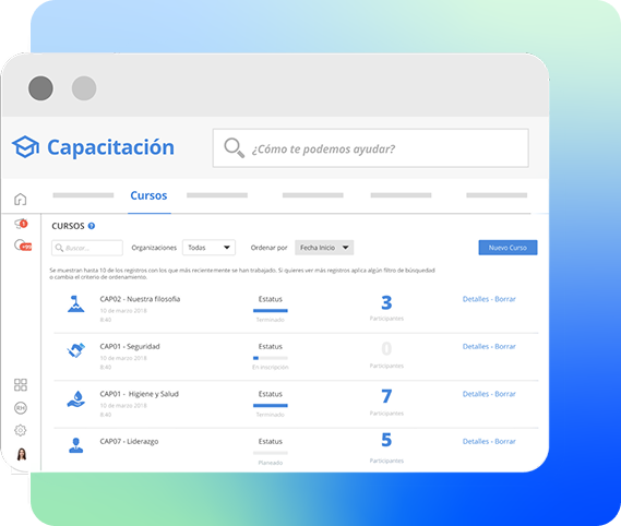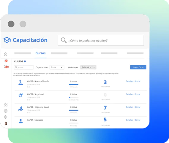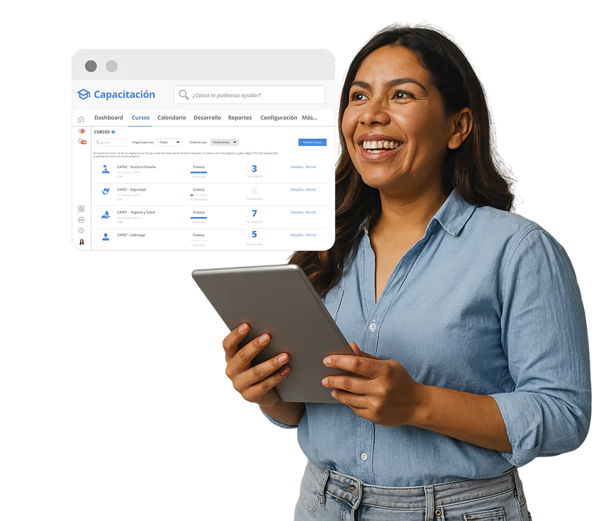 Optimiza la gestión de tus programas de capacitación con una herramienta intuitiva, flexible y moderna.