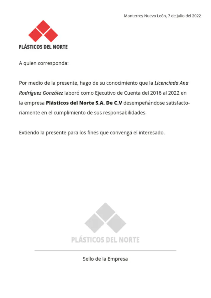 Como lo mencionamos, este documento normalmente se entrega cuando un empleado que ya no está en la organización la solicita para ser contratado en otra compañía, por lo tanto, el tiempo de respuesta es clave en esta solicitud. Aunque ya no se trate de un elemento vigente en la plantilla, es importante cuidar la atención que se le brinda de esta manera seguirá hablando positivamente de la empresa entre sus familiares, colegas, amigos y conocidos lo que sin duda construirá a forjar buenas relaciones con posibles candidatos o clientes.