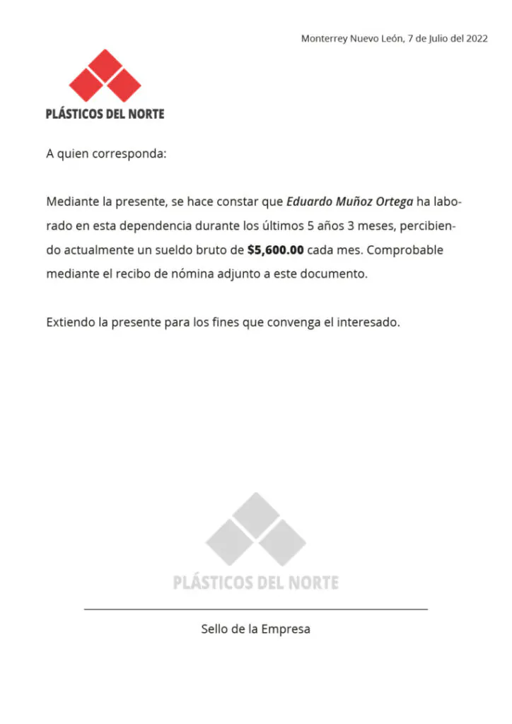 La carta de ingresos es otra solicitud más recurrente para los departamentos de rh que debe tener la siguiente información: