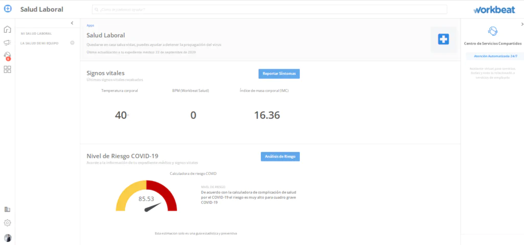 Monitorear el estado de salud de los empleados y desarrollar protocolos para los casos de sospecha de un posible contagio será de vital importancia para asegurar un retorno al trabajo tranquilo y previniendo brotes de virus. Para ello, puedes apoyarte de herramientas que te brindarán en tiempo real un registro de síntomas importantes, como temperatura y ritmo cardiaco, además de permitirte evaluar el riesgo del lugar presencial de trabajo; adicional, llevar un expediente específico por colaborador para registrar cualquier síntoma de COVID-19 y otras enfermedades te ayudará a brindarles un mejor seguimiento.