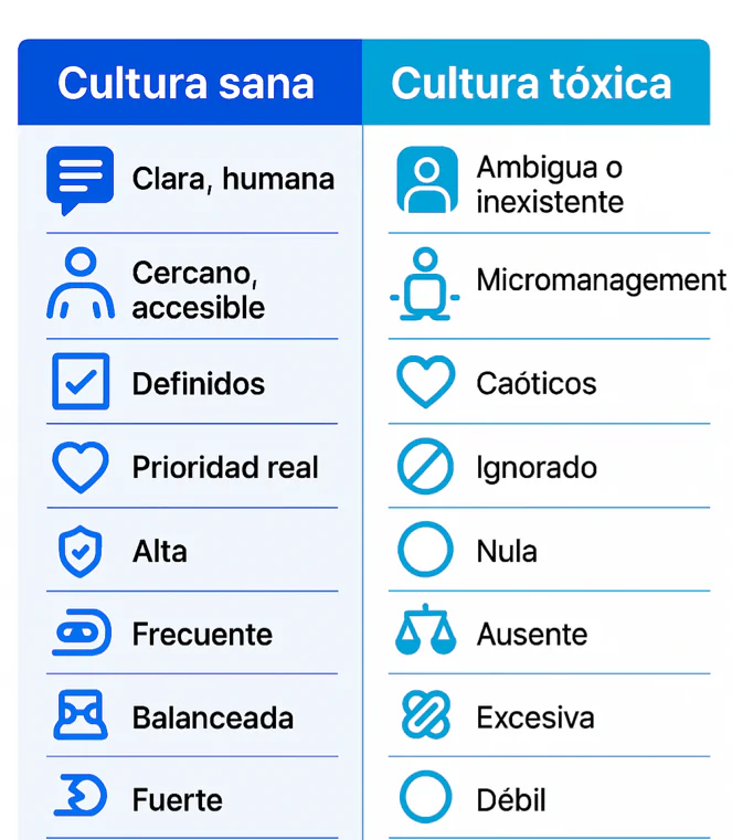 Señales de una cultura sana vs. una cultura tóxica