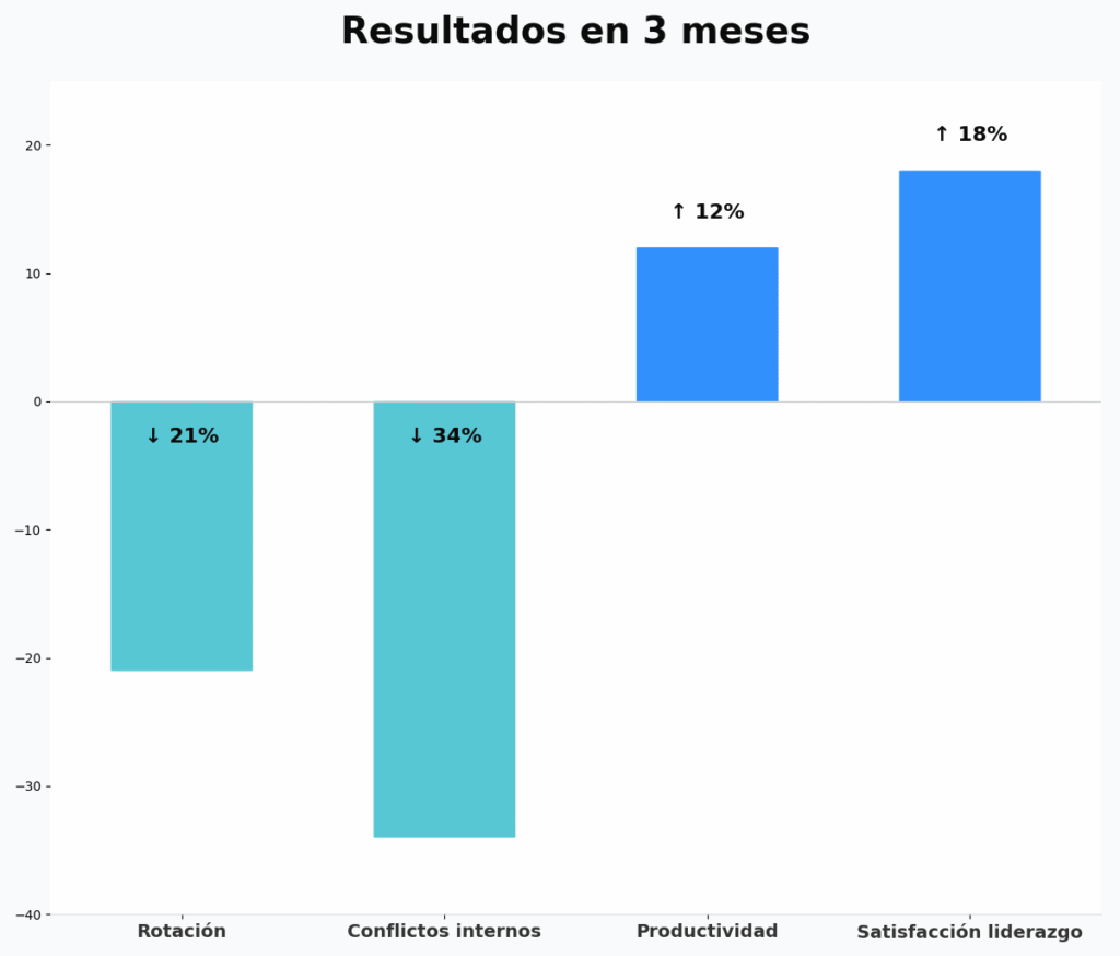 Una empresa manufacturera con 450 empleados enfrentaba rotación alta y señales de desgaste cultural: errores crecientes, tensión entre áreas y baja confianza en líderes.