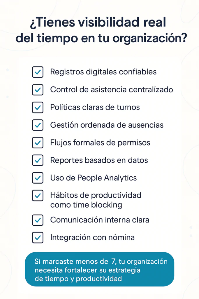 Las organizaciones de alto desempeño conectan tiempo, productividad y bienestar en la misma ecuación. Ya no existe crecimiento sostenido sin orden en la operación diaria.