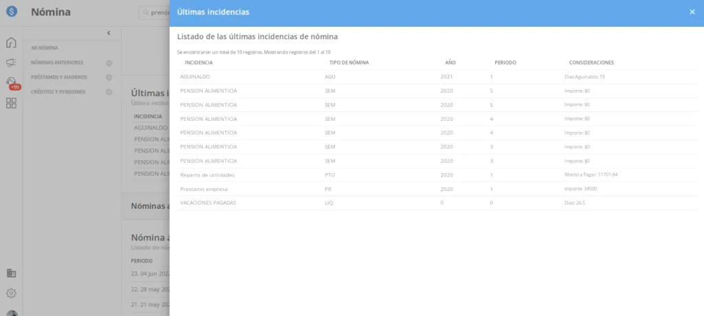 En algunas plataformas Prenómina e Incidencias funge como un módulo que te permite generar una gestión totalmente integrada al dar de alta de forma individual o masiva las incidencias que se generan en tu organización, por ejemplo: horas extras, bonos, comisiones, faltas o cualquier criterio que dicte tu compañía.