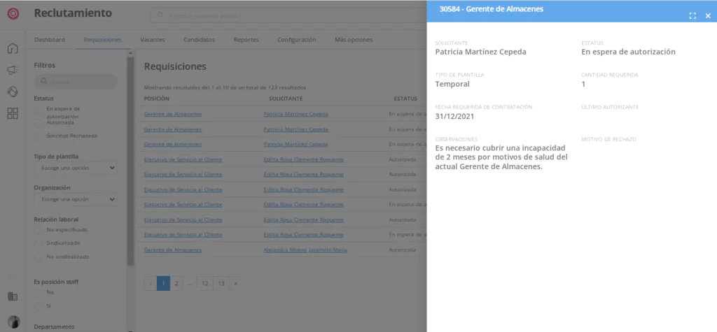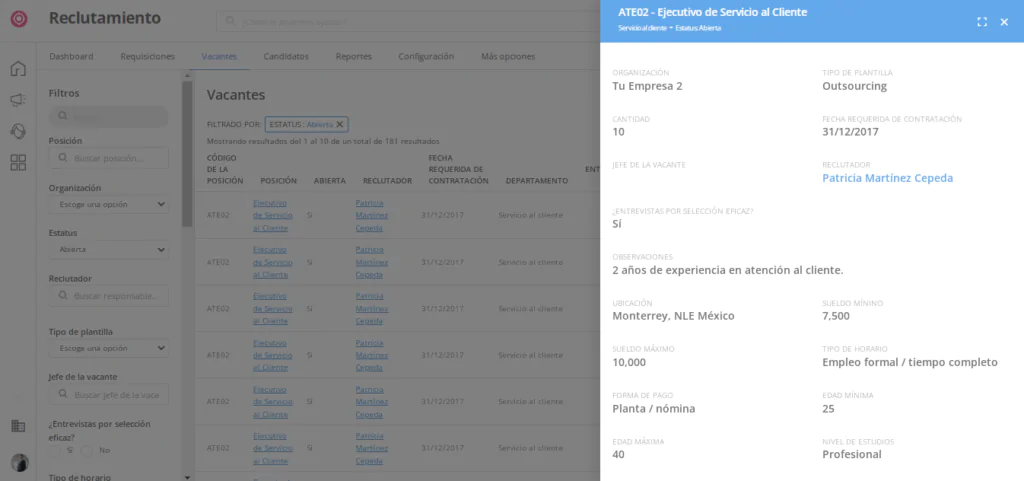 - ¿Cuál es el deadline de la vacante? El tiempo máximo para cubrir este puesto.