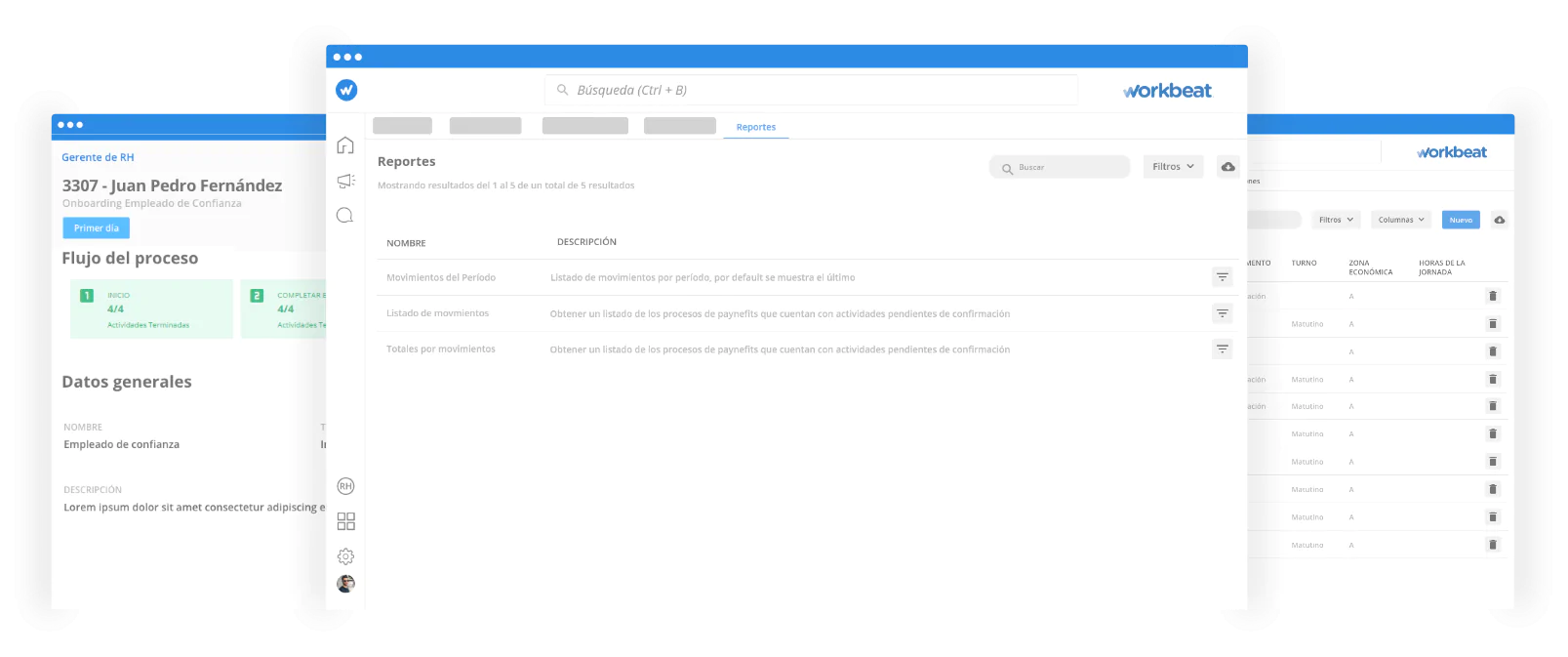 Toda la información de tu organización en reportes totalmente personalizados: elije los datos, ponles formato y expórtalos en el tipo de archivo que requieras. ¡Con Workbeat tienes un mundo de posibilidades!
