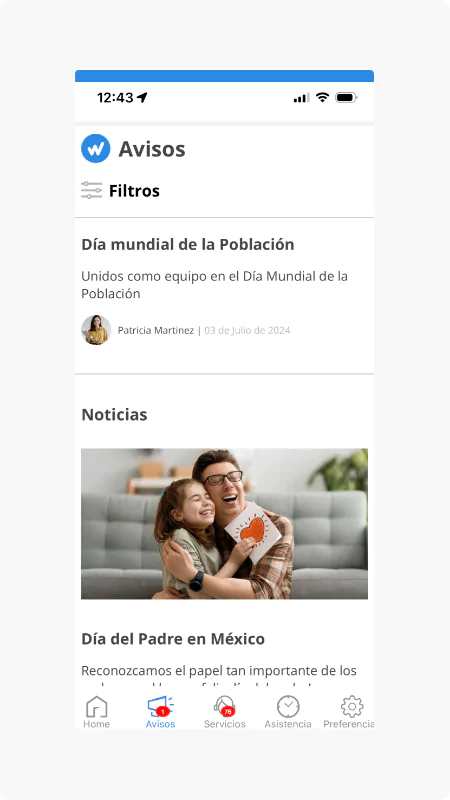 Fomenta el sentido de pertenencia y conecta con tus empleados a través de noticias, eventos y notificaciones de la empresa. La información que necesitan para sentirse parte de la organización.