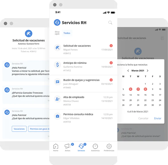 Moderniza los servicios de RH otorgados a tu equipo de trabajo, incluyendo solicitudes de anticipos de nómina y préstamos, control de asistencia, solicitudes de cartas y formatos, consulta de recibos y mucho, pero mucho más. Todo el poder y la autonomía de RH al alcance de su mano.