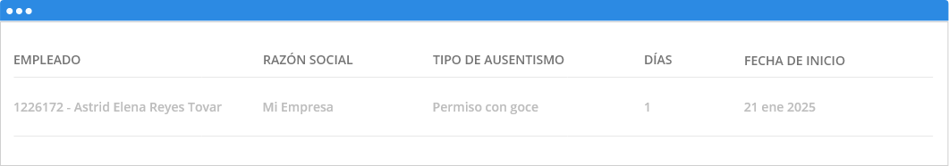 ¡Todo en un solo vistazo! Consulta ausentismos, vacaciones y puntualidad en una sola pantalla. Accede con un clic a estadísticas clave y obtén el detalle en la prenómina.